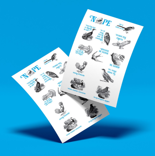 Finally, if you’re in France (or just find Effin’ Birds in French very funny), Éditions Lapin have two volumes of translated Effin’ Birds comics plus a bunch of goofy merch in bookstores and online. And you can also find the French translations in Canada.