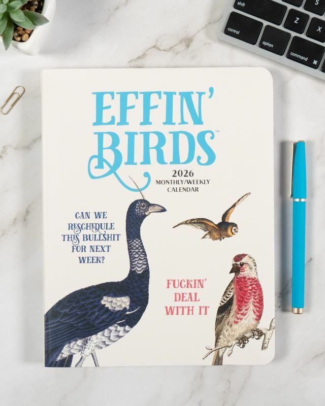Effin’ Birds wall calendars, weekly planners and day-to-day tear off calendars from Andrews McMeel are available in your local bookstore or at the big online places. If you follow these links to purchase them, sometimes I get a little kickback, but I actually make the most money when you buy them in your local shop.