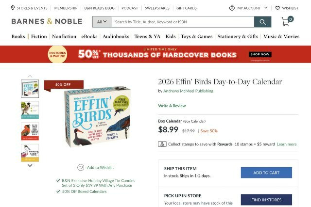 50% off the Effin’ Birds day-to-day calendar at B&N